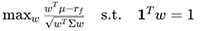夏普比率最大化:基于马科维茨均值-方差模型的二次规划(QP)问题: