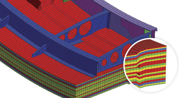 连接单元自动生成:识别螺栓孔、焊缝、胶粘区域,自动创建RBE2/CBUSH/焊缝单元